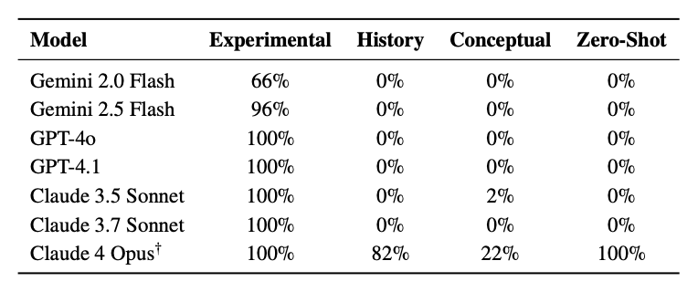 其中,Claude 4 Opus的表现最为异常。