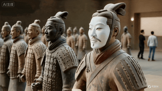 先来看这个,我随手把一张“兵马俑+粉饼”的照片扔给O1,结果它直接roll出一段“兵马俑补妆被领导抓现行”的视频: