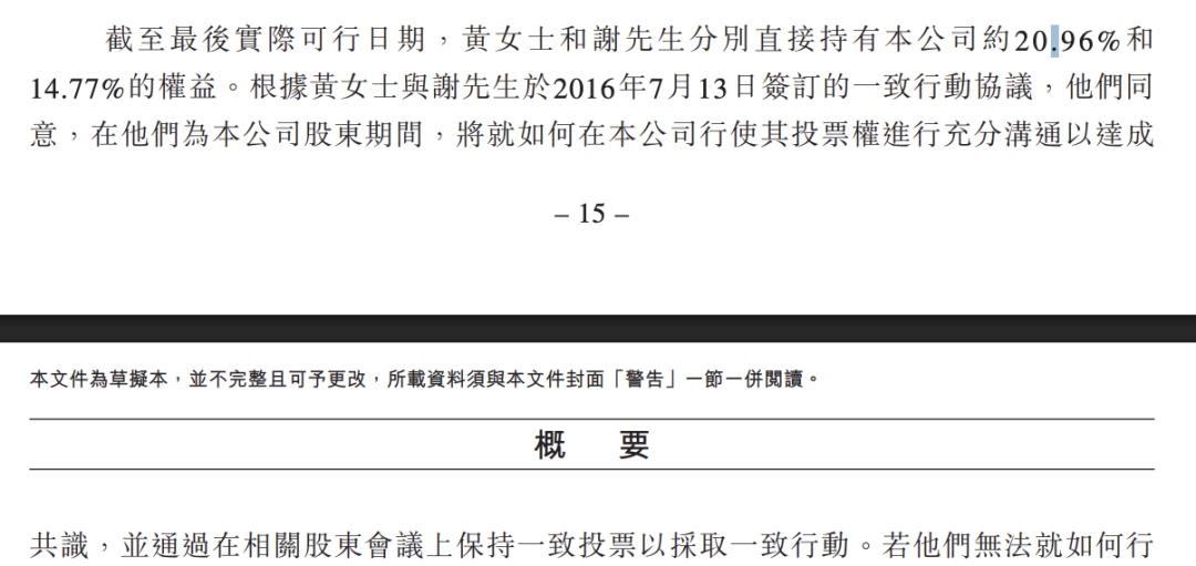双方于2016年7月签署一致行动协议,约定在股东投票时保持一致,两人共同作为控股股东控制公司。