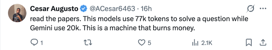 正如一位网友指出的,同样解决一个问题,Gemini只需要2万个token,而Speciale则需要花费7.7万个。