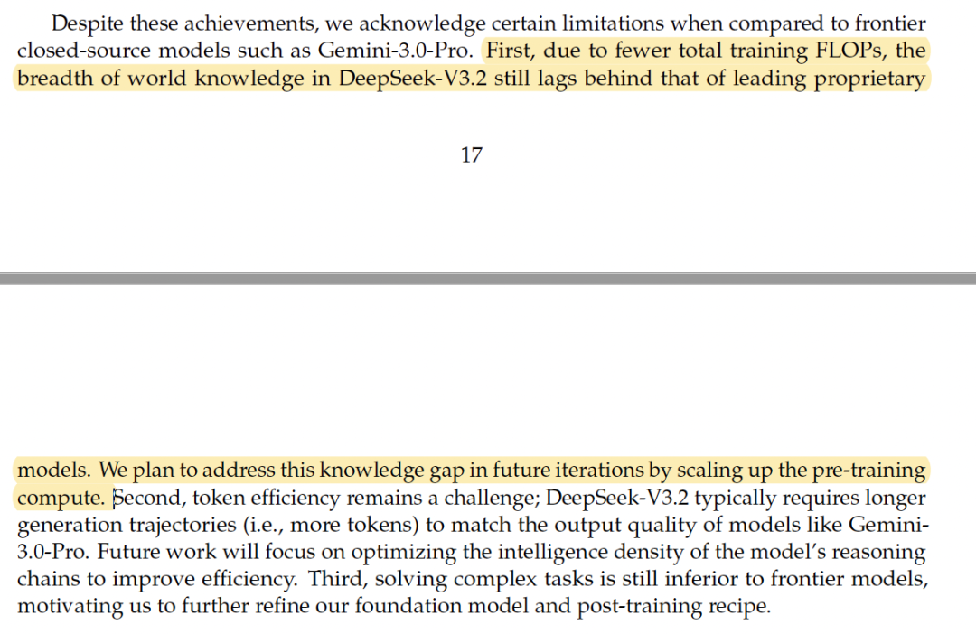 同时,在论文中,也有网友发现了为什么DeepSeek-V3.2在HLE和GPQA 等知识基准测试中表现稍逊: