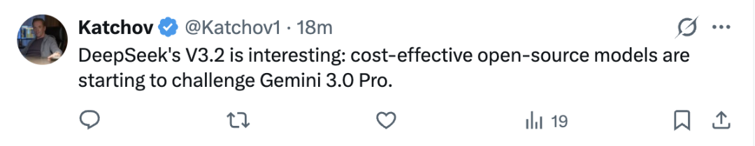 对此,有网友表示,DeepSeek-V3.2这一经济实惠的开源模型正在挑战Gemini3.0 Pro。