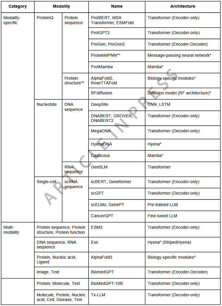 表1 生物语言、结构与多模态模型的分类