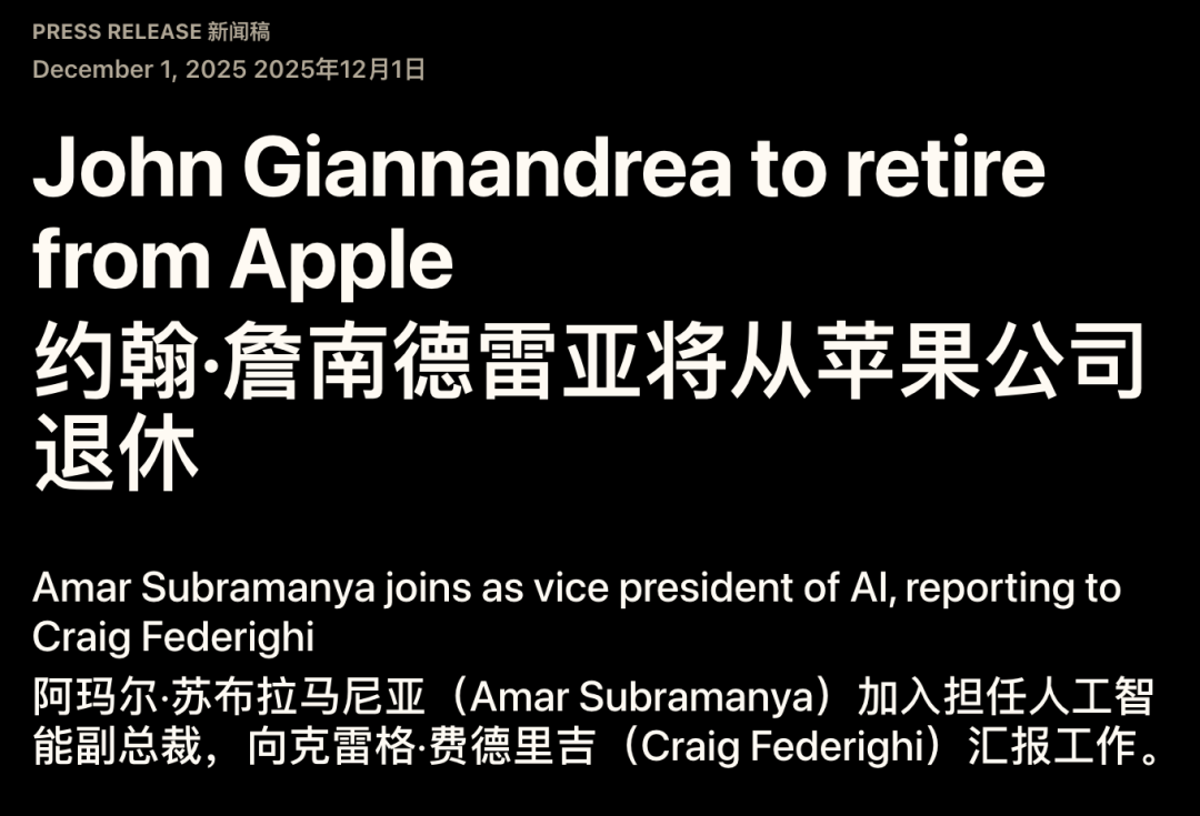 这是一场迟到的人事地震,也是苹果为自己错失的AI 2.0时代所付出的昂贵学费。