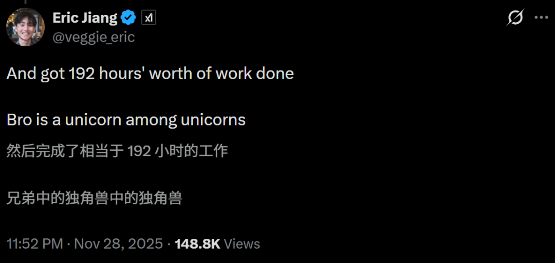 「这相当于常人192小时的工作量,你是真独角兽中的独角兽。」