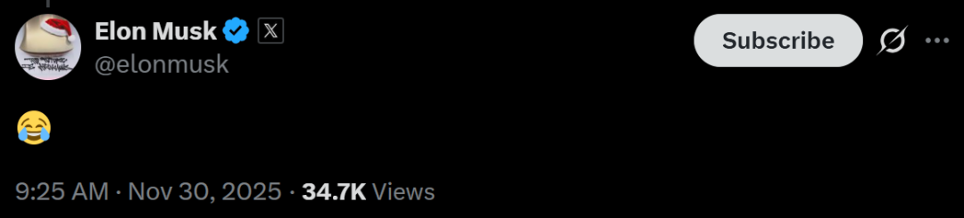 马斯克本人也在底下以「笑哭」表情回应。
