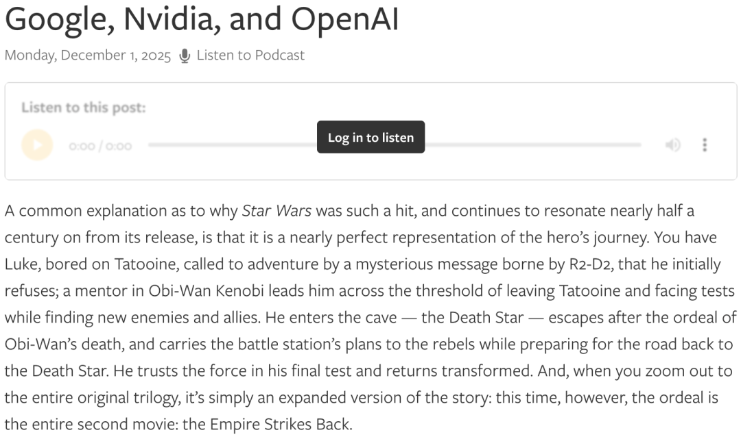 知名科技博主Ben Thompson,则把OpenAI与Nvidia比作《星球大战》中的「原力觉醒」的天行者。