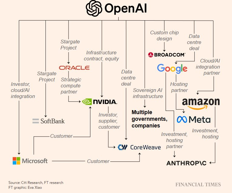 芯片巨头(Nvidia、博通)、云服务商(微软、甲骨文、谷歌、AWS)、另类托管商(CoreWeave),乃至Meta/Anthropic及部分政府/主权级合作方,OpenAI全部接入其中