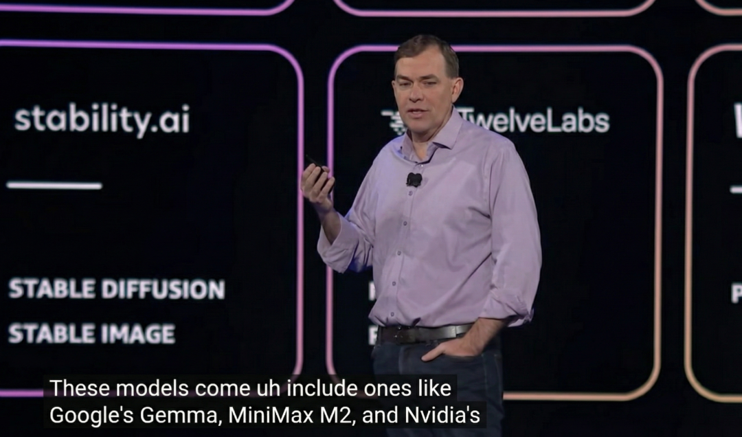 AWS re:Invent 2025大会上,AWS CEO宣布Amazon Bedrock模型库迎来扩容,MiniMax M2作为中国模型代表在列