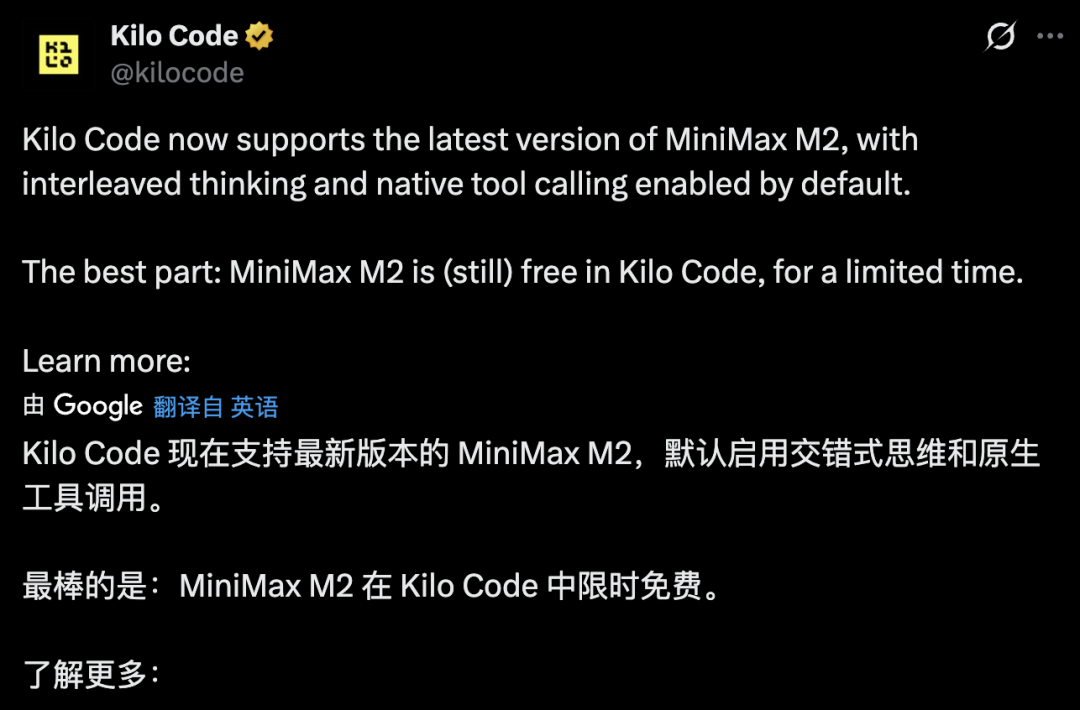 Kilo Code:针对这个新兴的云端IDE,MiniMax提交了代码,优化了环境细节与工具结果的合并逻辑,解决了多轮对话中状态丢失的问题。