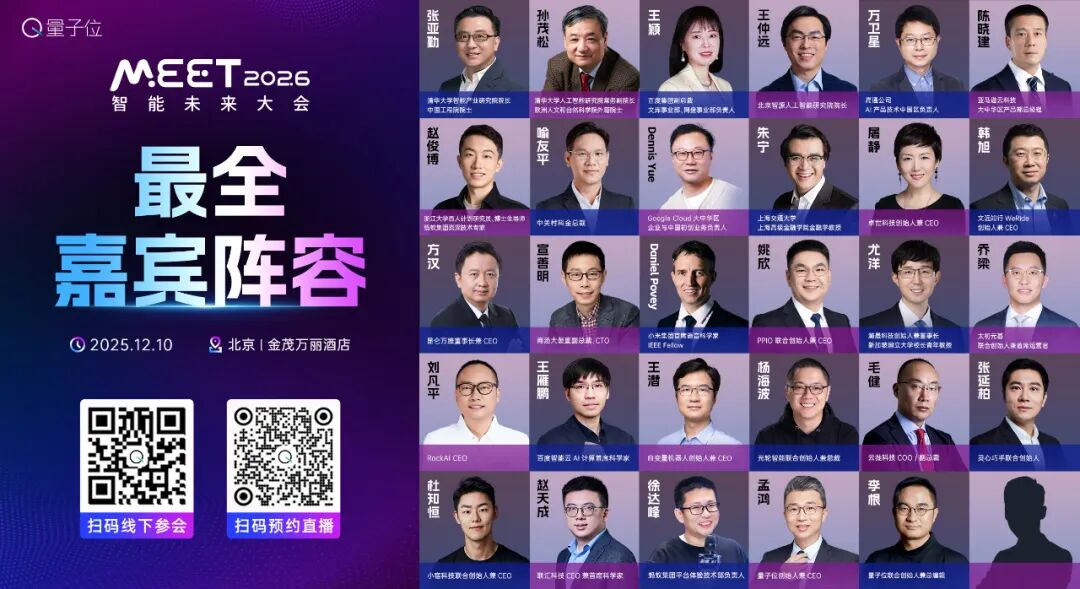 技术终要服务于人,AI的价值或许不在参数多大,而在能否在千行百业中真正用起来。今年MEET大会的嘉宾阵容,恰好构成了一幅从理论、平台、应用到终端的完整落地拼图——