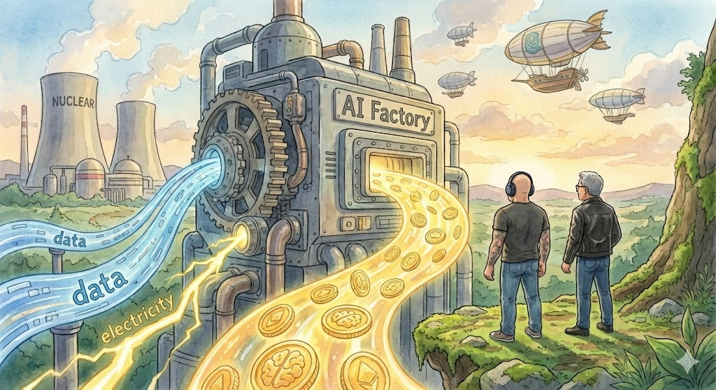 黄仁勋: 不,这不仅是比喻。工业革命时期,工厂输入水和煤,输出电力。