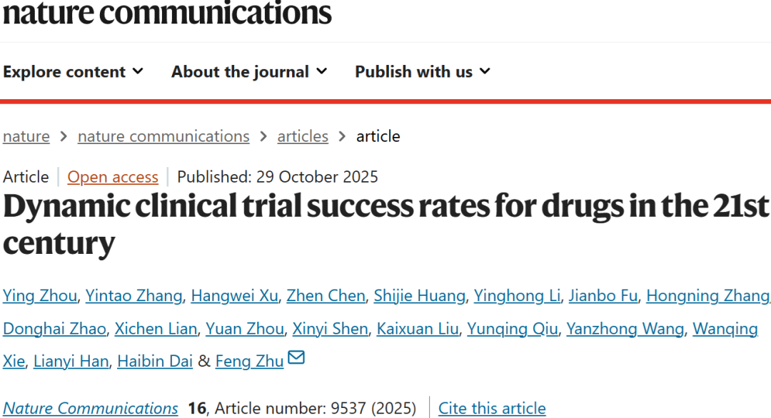 Zhou, Y., Zhang, Y.T., Xu, H.W. et al. Dynamic clinical trial success rates for drugs in the 21st century. Nature Commun. (2025)