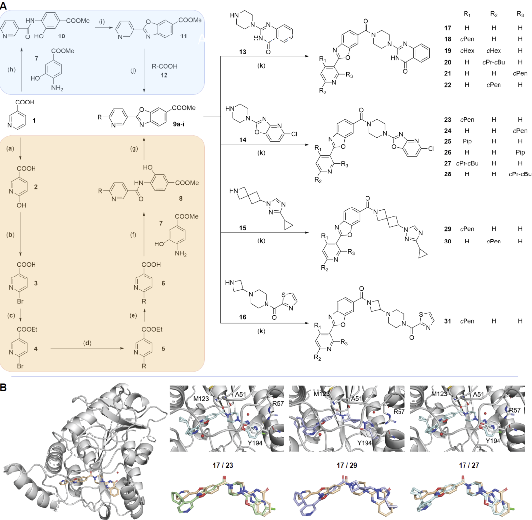 图 4|新型 MAGL 抑制剂的合成路线与蛋白复合物结构