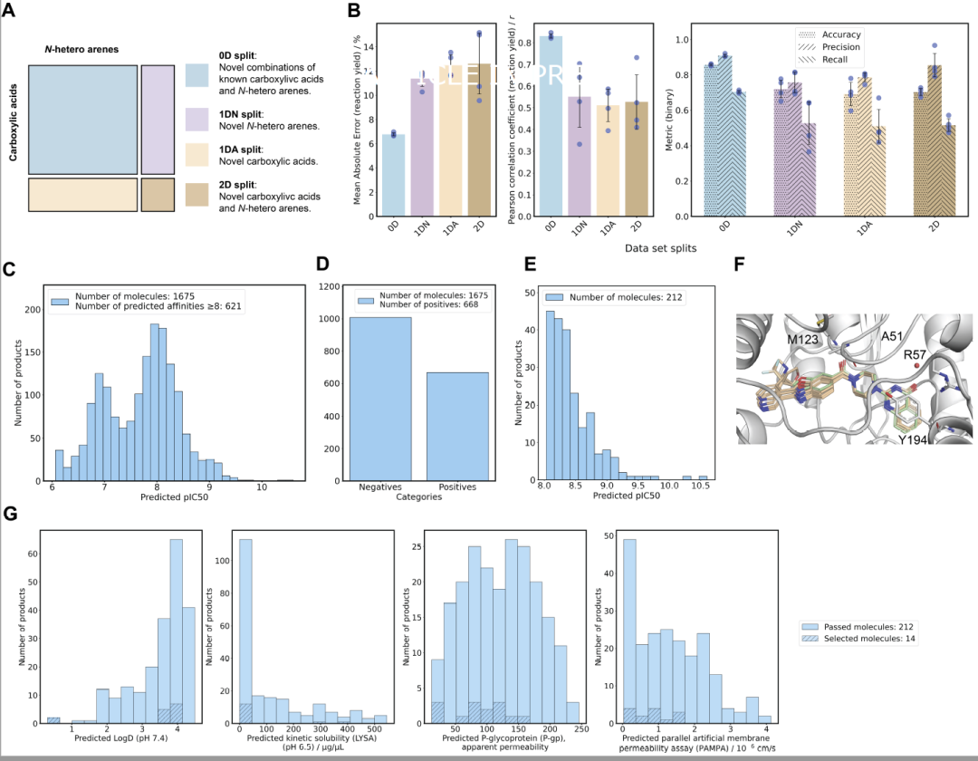 对未见底物(酸或杂环)的预测也保持稳定,对新组合的预测精度同样良好。