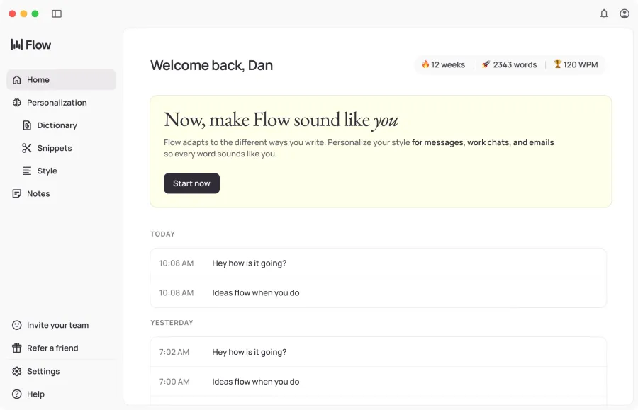 Wispr Flow 的作用,是让你专注能创作。你可以毫无顾忌地把所有想法说出来,把剩下编辑的工作都交给 AI。它就像一个信任的伙伴,帮你处理好所有细节。这是为什么我们的用户反馈最多的,不是节省了多少时间,而是感觉生活轻松多了。