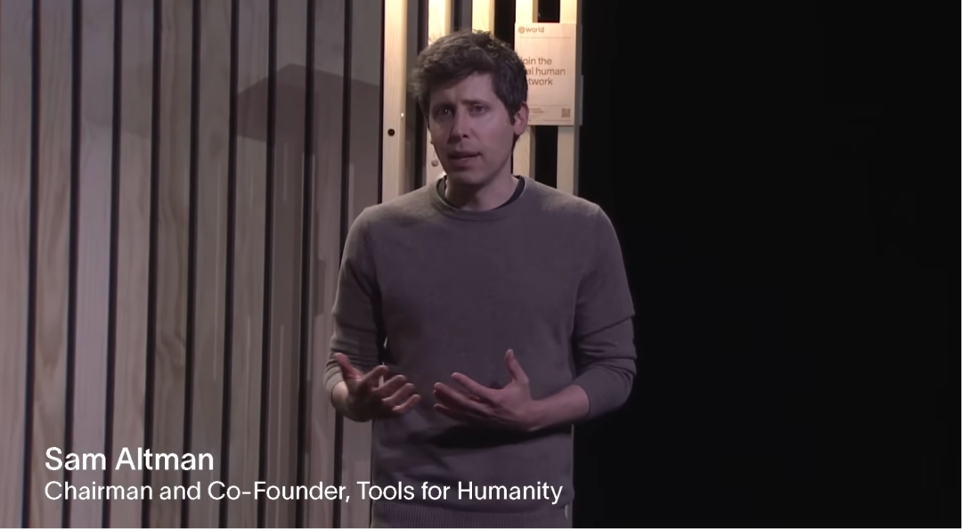 在 Tools for Humanity 的官网上,一行醒目的文字定义了公司的核心命题:「一家在 AI 时代为人类建构的技术公司」。这不仅是一个口号,更是他们反复强调的初衷。在今年的旧金山发布会上,联合创始人 Sam Altman 与 CEO Alex Blania 再次说明了这一理念的背景。
