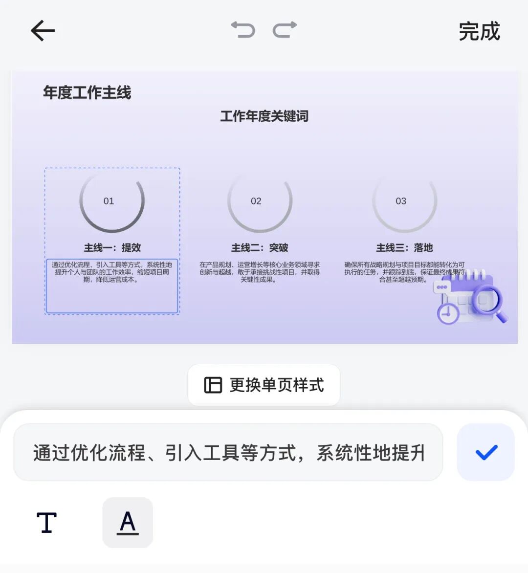 更实用的一点是,生成完还能改,我觉得这是这次升级最最最实用的功能点,毕竟我们平时让AI帮我们生成的PPT都不支持修改,最后还是要挪到office里搞,很麻烦。