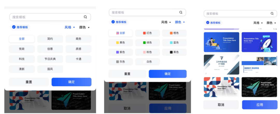 此外,PPT美观程度也是我们很care的点,现在我们在千问中可以直接更换PPT模板款式,还支持选择模板风格和颜色:
