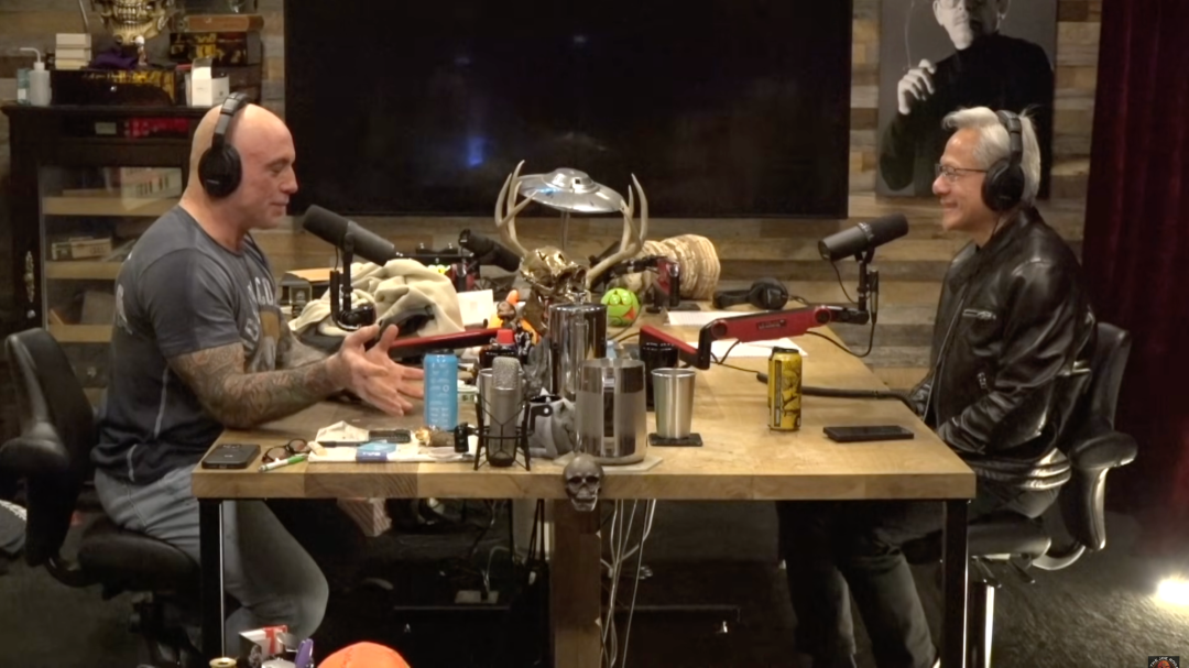 当全世界都在盯着英伟达那令人眩晕的股价,把黄仁勋奉为AI时代的「凯撒大帝」时,他却坐在了乔·罗根(Joe Rogan)那个充满了威士忌和烟味儿的录音棚里,聊了整整两个半小时。