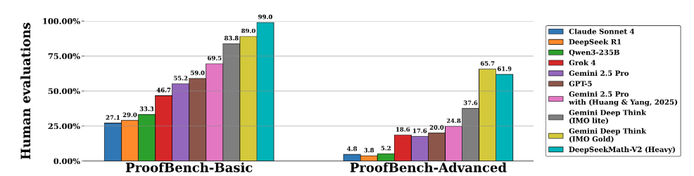 大语言模型在数学推理方面取得了显著进展,这不仅为人工智能提供了一个重要的测试平台,若进一步发展,还可能对科学研究产生深远影响。但当前仍面临根本性局限:追求更高的最终答案准确率,并不能解决一个核心问题——正确的答案并不意味着推理过程正确。因此本文提出 DeepSeekMath-V2,在大规模测试计算资源的支持下,展现出强大的定理证明能力:在 2025 年国际数学奥林匹克和 2024 年中国数学奥林匹克中取得金牌级成绩,在 2024 年普特南数学竞赛中获得接近满分的 118/120分。