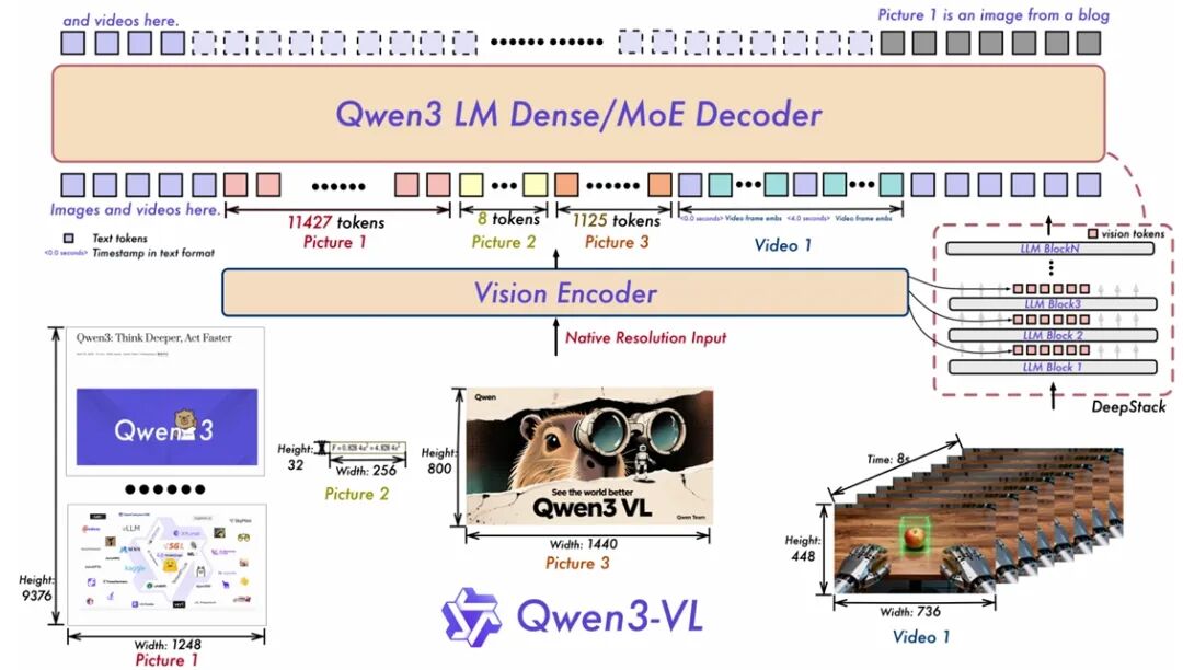 本文推出 Qwen3-VL,这是迄今为止 Qwen 系列中能力最强的视觉语言模型,在广泛的多模态基准测试中均展现出卓越性能。该模型原生支持长达 256K tokens 的交错上下文,能够无缝融合文本、图像与视频信息。模型家族涵盖密集架构(2B/4B/8B/32B)与混合专家架构(30B-A3B/235B-A22B),以适应不同场景下的延迟与质量权衡需求。