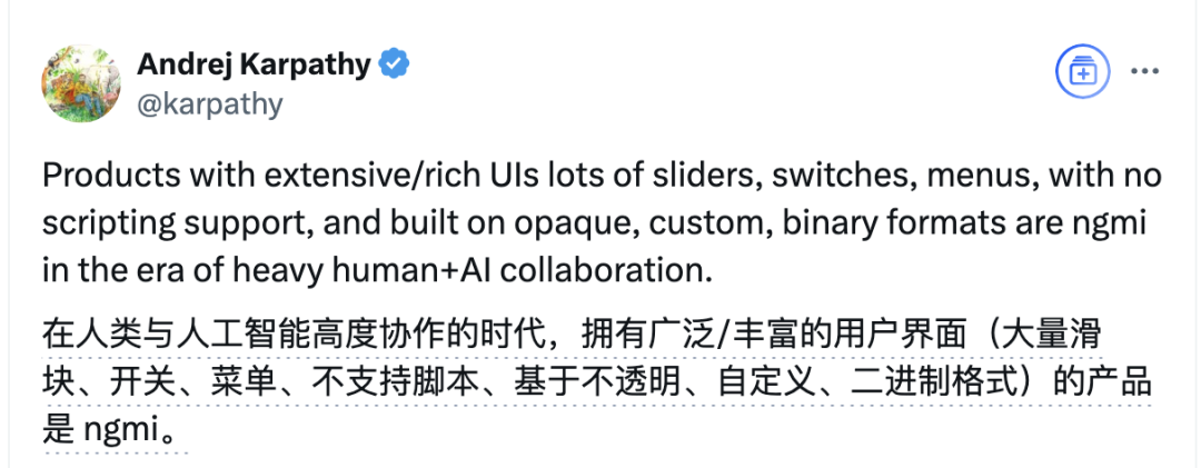 Karpathy的这番发言,并不意味着要消灭图形界面,但想要适应Agentic AI时代新的交互范式,开发者就必须在GUI之外提供新的交互接口。
