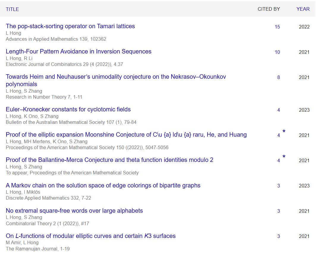 其中大多数还是和张盛桐(本科期间登上数学四大顶刊)合作完成,并刊登在《美国数学会会报》、《拉马努金期刊》上。