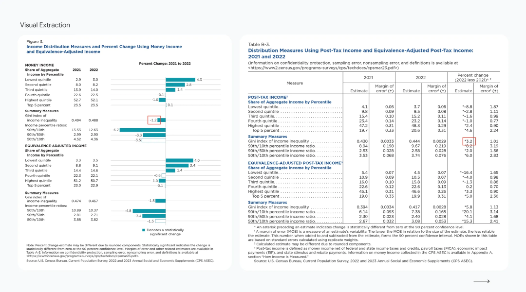 举例来说,用户分析美国人口普查局62页的《Income in the United States: 2022》报告时提出以下提示词: