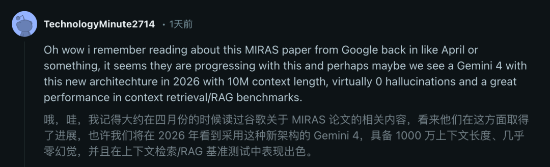 有Reddit网友预测,或许我们在明天,就可以看到采用Titans架构的Gemini 4。