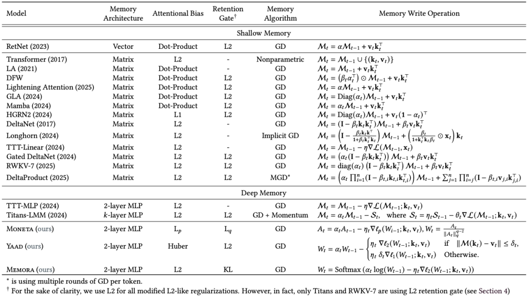 MIRAS通过四个关键设计维度,来定义序列模型: