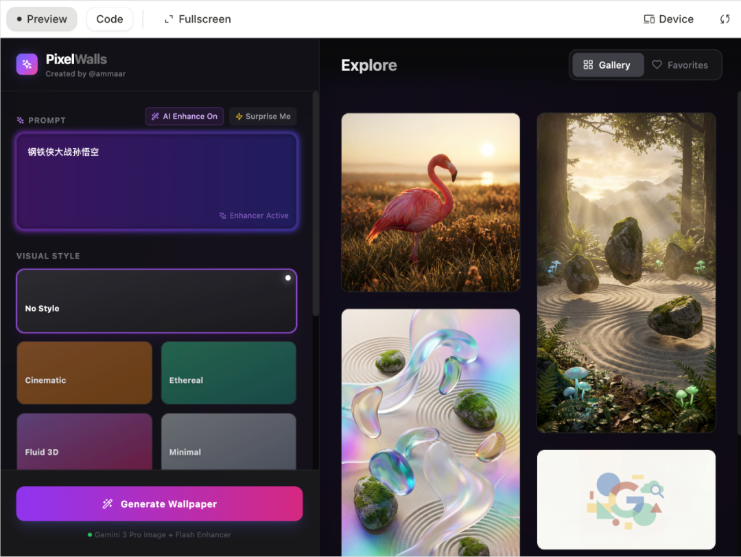 如果你想要一个结果(比如一个能玩的 3D 网页),用Gemini Canvas。
