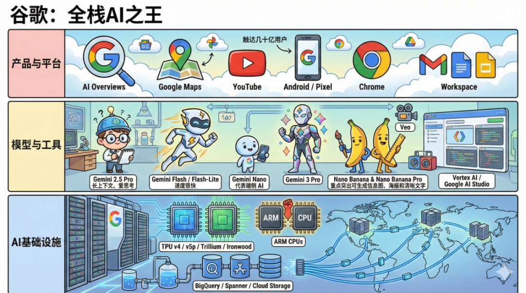 这些C端产品一方面制造了真实的流量和使用压力,另一方面又不断把反馈灌回谷歌的TPU和Gemini,让它们在高频迭代中越跑越省钱、越跑越高效。