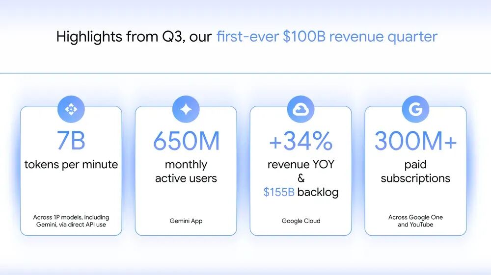 在2025年第三季度,谷歌的第一方模型(如 Gemini)仅通过客户直接API,每分钟就处理约70亿个tokens。