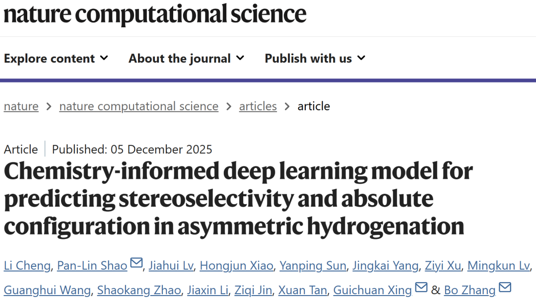 Cheng, L., Shao, PL., Lv, J. et al. Chemistry-informed deep learning model for predicting stereoselectivity and absolute configuration in asymmetric hydrogenation. Nat Comput Sci (2025).