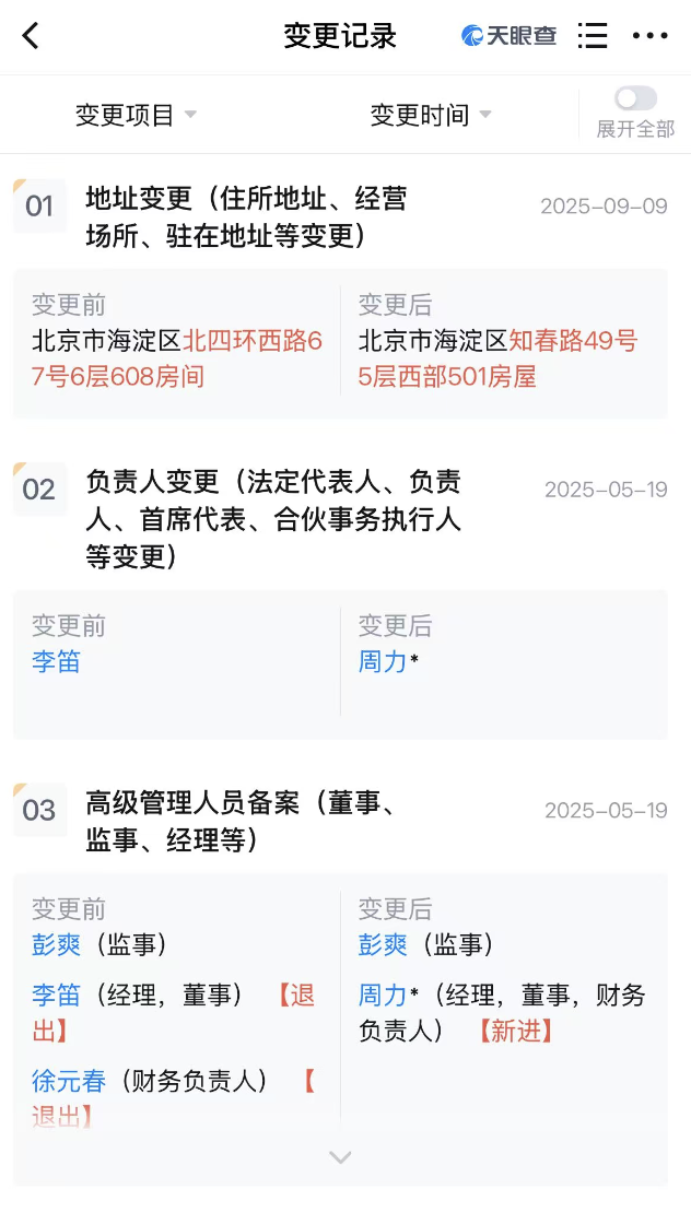 李笛也不再担任小冰公司法人。