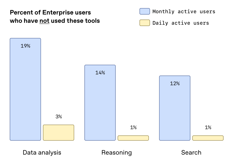 使用数据分析、API和推理模型等高级工具的员工报告了更高的生产力收益。