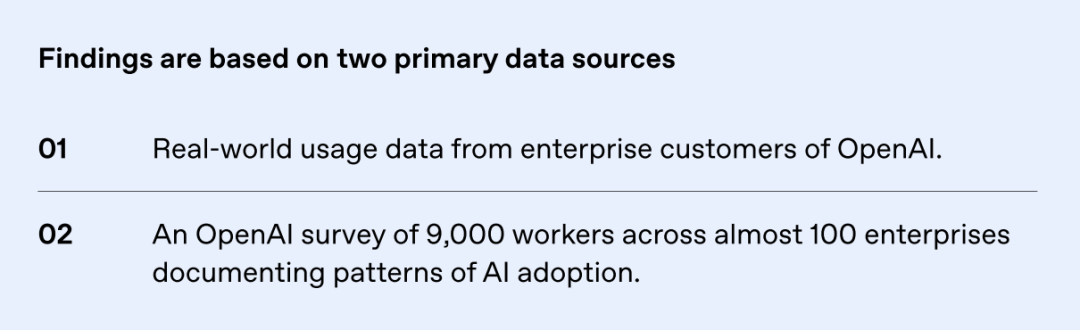 实际使用数据:来自OpenAI企业客户的去标识化(de-identified)和聚合(aggregated)的使用数据。