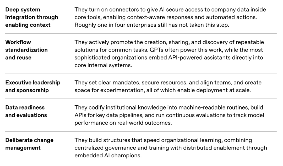 数据准备是关键瓶颈:目前仍有约1/4的企业尚未开启连接器(Connectors)以赋予AI访问内部数据的权限。