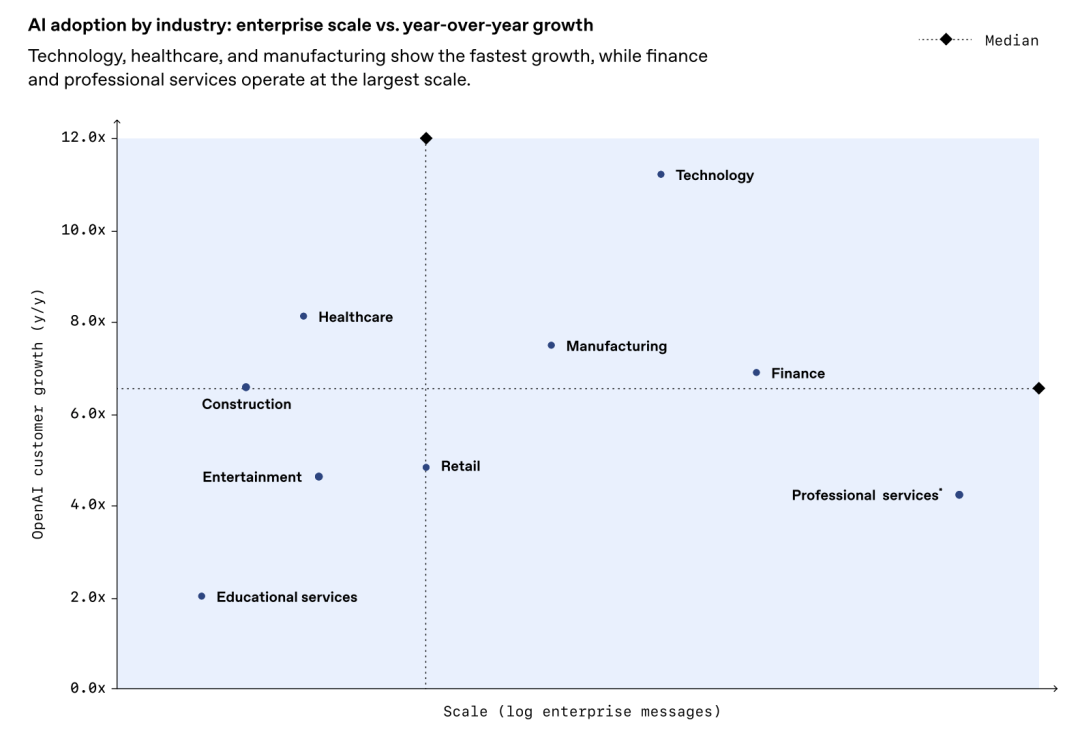 最新数据显示,过去一年,企业用户对OpenAI工具的使用量猛增。