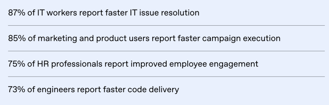 ⏱️效率飞跃:员工利用AI工作每天平均节省40–60分钟;重度用户每周节省时间超过10小时。