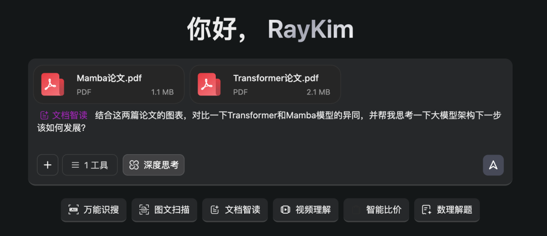 例如我们上传Transformer和Mamba两篇论文,然后附上一句Prompt: