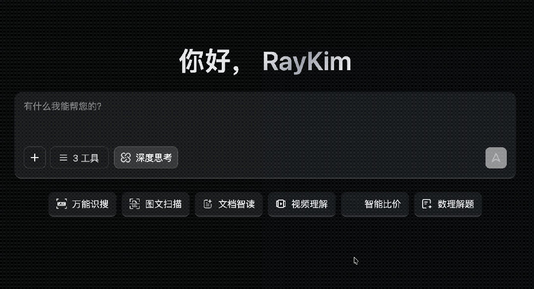 然后根据任务的需求,我们可以在输入框下方快速选择任务类型,也可以在工具选项中勾选图像识别、图像处理、图像搜索或购物搜索等工具。