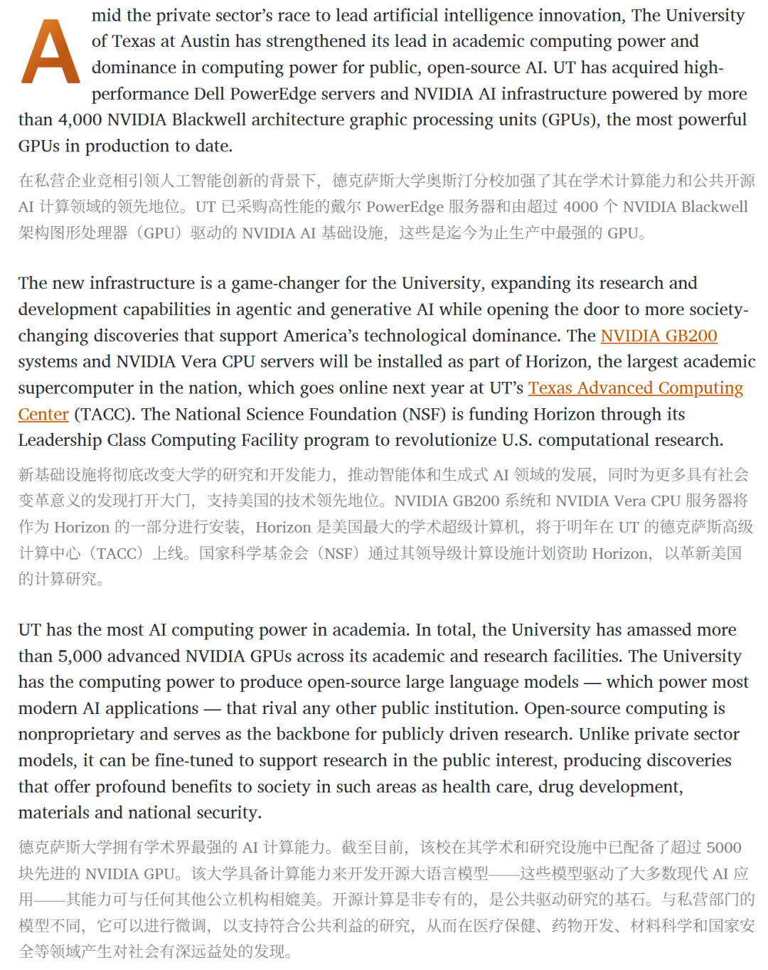这些英伟达GB200系统和Vera CPU服务器,将加入全美最大的学术超算「Horizon」,为UT Austin提供学术界最强悍的AI算力。