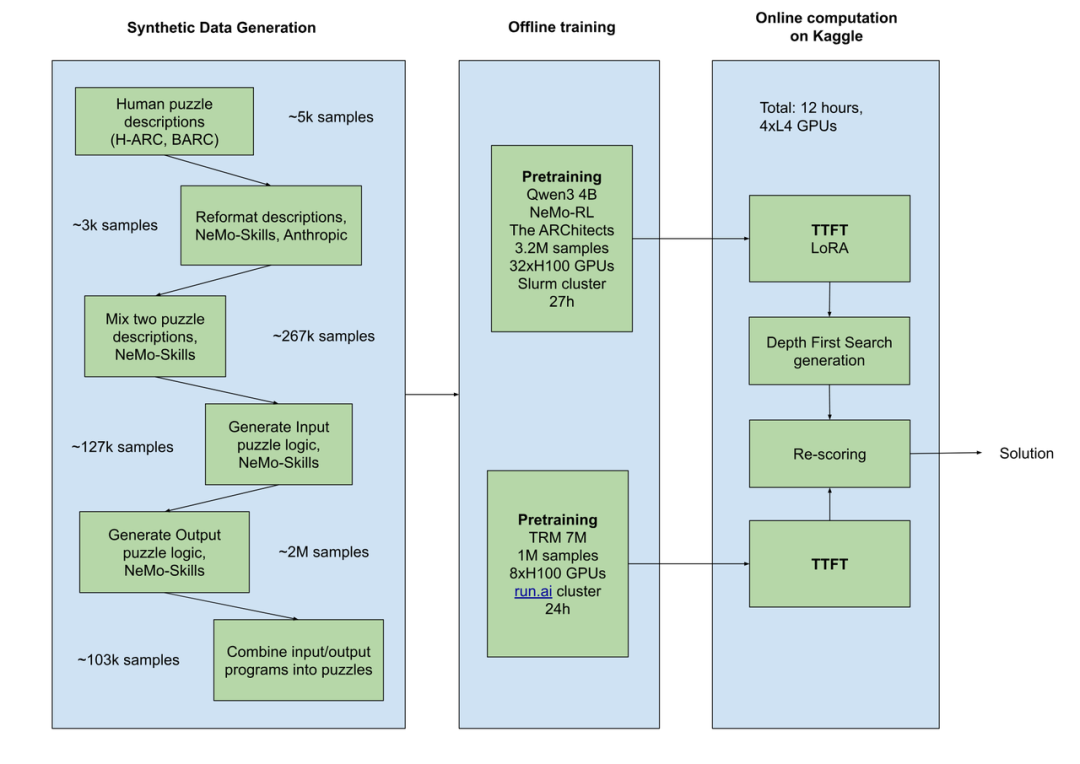 据官方分析,此次NVARC夺冠的亮点在于零预训练深度学习方法