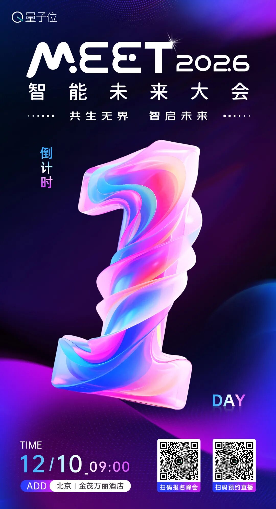 🔊 锁定12月10日周三,AI圈一年一度绝对不容错过的盛宴马上就要来了——MEET2026智能未来大会。👉 了解详情
