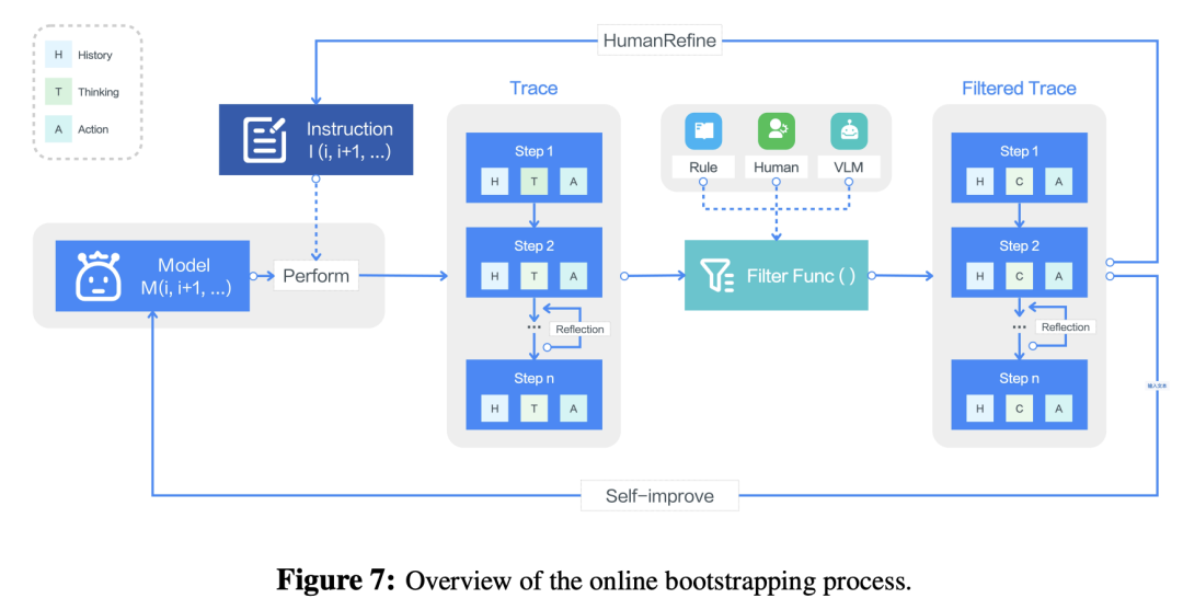 4)借助数百台虚拟机自动收集交互轨迹,通过多阶段过滤、反思调优和直接偏好优化(DPO)解决数据瓶颈,实现模型迭代优化。
