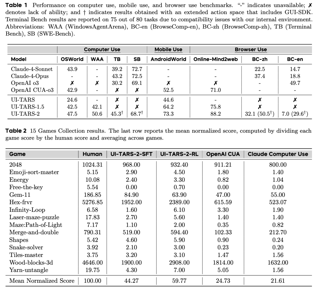 今年9月,UI-TARS-2的发布将智能体能力推向新高度,也为豆包手机助手提供了关键技术支撑。