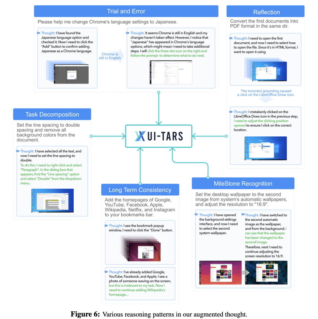 3)融入600万高质量GUI教程和多种推理模式(任务分解、反思等),注入System-2深思型推理能力。