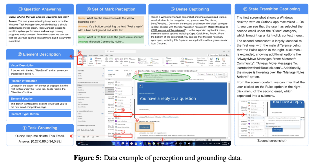 1)通过大规模GUI截图数据集和五大感知任务(元素描述、标记区域感知等)增强GUI感知精度。